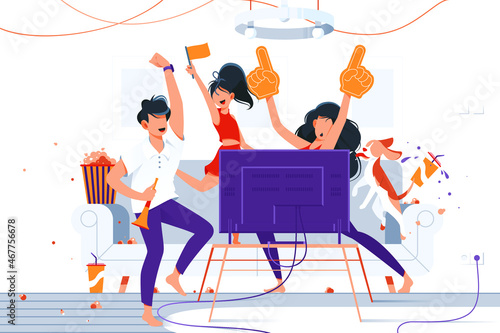 Dj Prom party club vektorové pozadí s šťastní lidé tančí ilustrace. Muž disk žokej hrát žokej míchání disco hudba připínáčky pro klubové skupiny muž a žena
