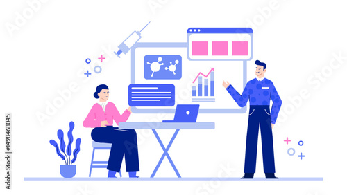 Doktor oftalmolog kontrola zraku, ploché vektorové ilustrace. Oftalmologie, optometrie, oční test a korekce zraku.