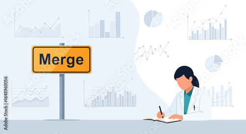 Doktor plastický chirurg kreslení řezných čar se značkou na ženské tváři, ploché vektorové ilustrace. Plastická chirurgie, kosmetická procedura. Brada, vylepšení tváře. Konturování obličeje.