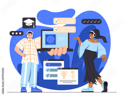 Lékař ukazuje ultrazvukové vyšetření šťastné těhotné ženě, vektorová plochá ilustrace. Ultrazvukové vyšetření, sonografie. Těhotná žena lékařská diagnostika, prenatální zdravotní péče.