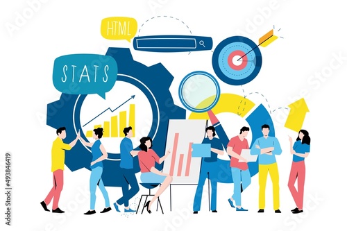 Lékaři, malé mužské a ženské postavy zkoumající obří játra, lidský vnitřní orgán, plochá vektorová ilustrace. Cirhóza, hepatitida diagnóza onemocnění jater, léčba. Lékařský laboratorní výzkum.