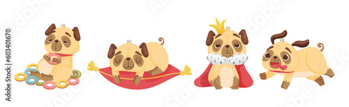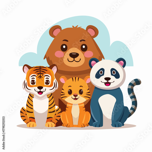 Legrační pes a kočka cestovatel stojící s pasem v blízkosti klece kočár vektorové ilustrace. Roztomilé štěně a kotě na sobě letní šortky jít na výlet dobrodružství do tropického letoviska na dovolenou