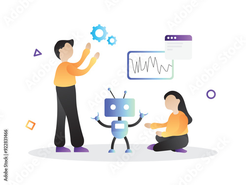 Vektorová ilustrace člověka, který trénuje svého psa, hraje se svým čtyřnohým přítelem pomocí míče. Pet majitel a jeho štěně plochý styl designový prvek, ikona izolován na bílém pozadí.