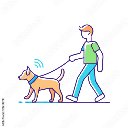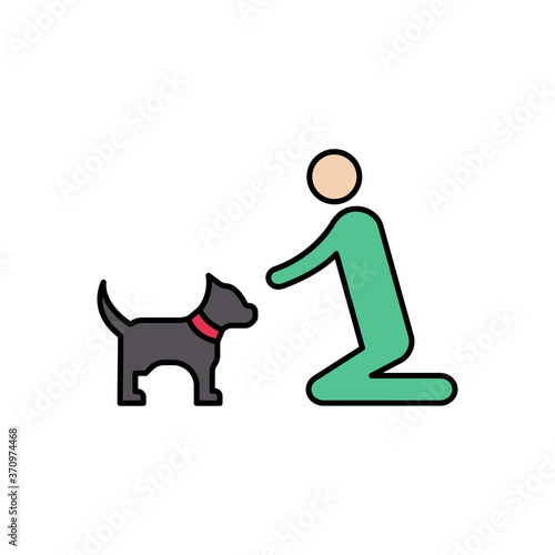 Vektorová ilustrace člověka, který trénuje svého psa, běží, hraje se svým čtyřnohým přítelem. Pet majitel a jeho štěně plochý styl designový prvek, ikona izolován na bílém pozadí.