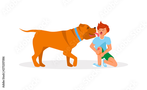 Pes superhrdina charakter ve žlutém plášti a masky vektorové ilustrace. Roztomilý hnědý legrační štěně super hrdina izolovaných na bílém pozadí