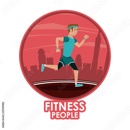 Vektorová ilustrace cirkusového muže s vycvičeným psem skákajícím přes obruč. Výstava zvířat v cirkusu. Pes trenér plochý styl designový prvek.