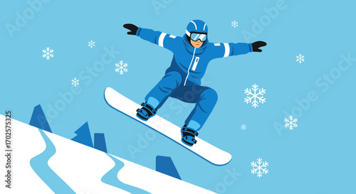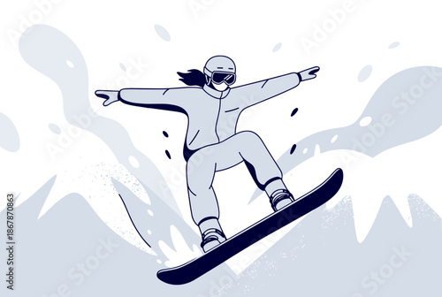 Dvojitá expozice vektor vrstvený papír řez snowboardista silueta s zimní noční přírodní krajiny uvnitř. Trendy kompozice pro zimní sporty na kartu, plakát, banner, webovou stránku atd.