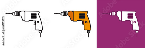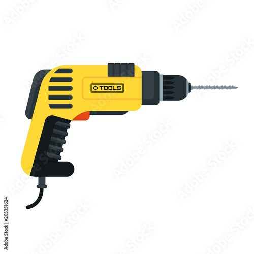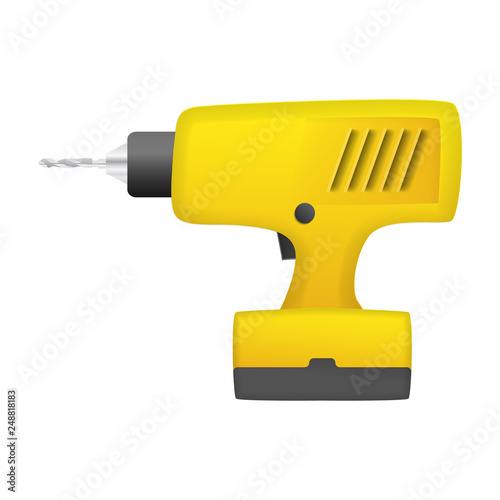Vrták vektor. Elektrický šroubovák stroj power stavební nástroj ikona izolovaných na bílém pozadí