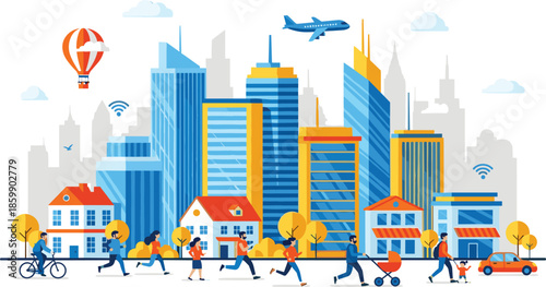 Drone delivery concept vector horizontální banner. Kvadrokoptéry doručující zásilky zákazníkům. Moderní plochý designový prvek pro doručování dronů obchodní reklama.