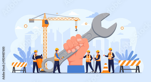 Kvadrokoptéra drone s kamerou natáčení města při letu nad ním, vektorové ilustrace. Drone technologie, inovace a vědecký vývoj koncept pro web banner, webové stránky atd.