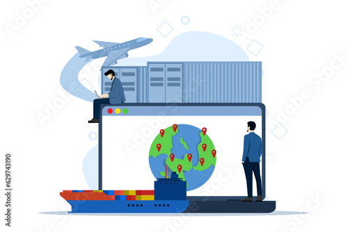 Velké město a mužské postavy zahajují dron, vektorová ilustrace. Bezpilotní vzdušné vozidlo, koncept technologie drone pro webový banner, webovou stránku atd.