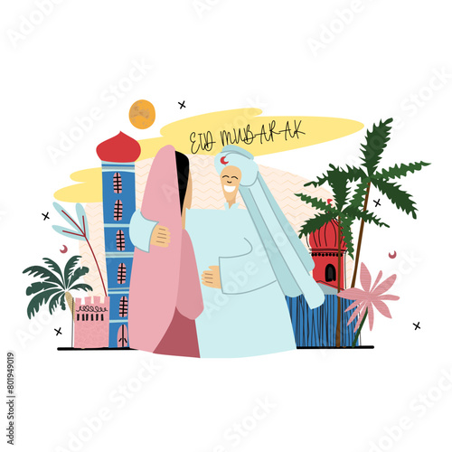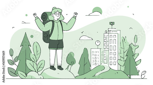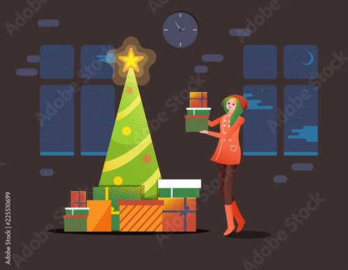 Vektorová ilustrace švadlena nebo oděvního návrháře stojícího vedle figuríny oblečené v nových růžových večerních šatech. Ateliér, krejčovství, módní salon koncept designový prvek v plochém stylu.