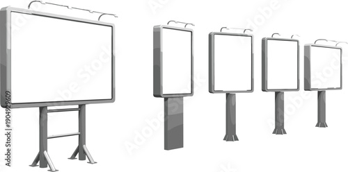 Odolné ocelové tyče s různými tvary a průměrem. Realistické kovové banner držák a držák vektorové ilustrace izolovaných na bílém pozadí