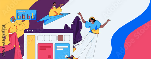 Mezinárodní e-commerce a přepravní služby, vektorové ilustrace. E-commerce a doručování zásilek složení s postavami, dodávka pro webový banner, webové stránky atd.