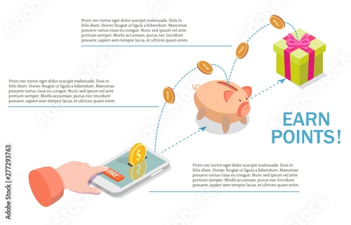 Získejte body za nákup diagram, vektorové ploché ilustrace. Bonusové body věrnostní program, marketingová strategie infographic.