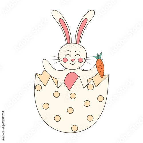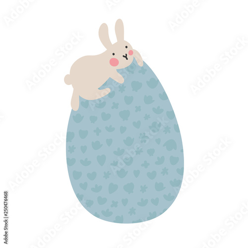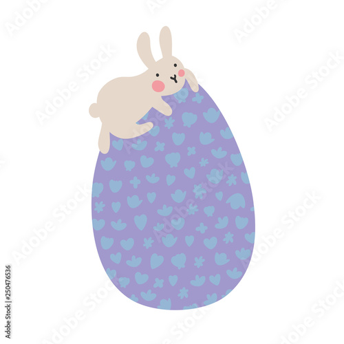 Velikonoční zajíček drží vejce se vzorem v tlapce papercut roztomilý vektor. Legrační jarní dovolená králík ikona izolovaných na bílém pozadí