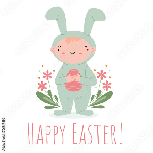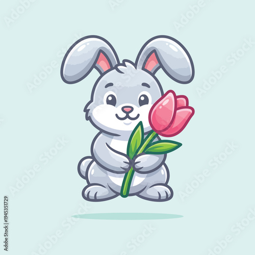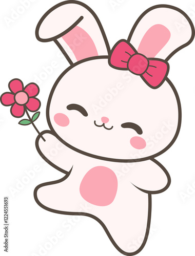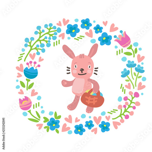 Velikonoční zajíček vector. Roztomilý králík karikatura ikona. Načechraný zajíc s jarní květ nyní květ vůně ilustrace izolovaných na bílém pozadí. Zvířecí charakter pro návrh přání na jarní prázdniny