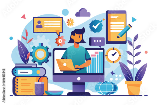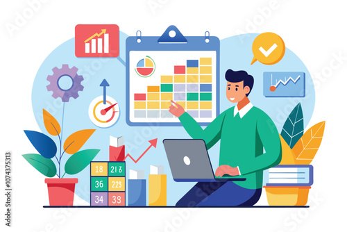Easy information search vector landing page design template. Lidé, kteří používají internet pro výzkum. Shromažďování a sběr dat, surfování a prohlížení v mediální síti ilustrace