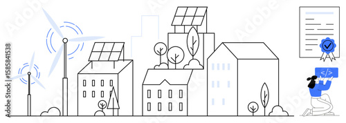 Ekologická tovární koncepce vektorová ilustrace. Moderní tenká čára umění plochý styl designový prvek pro webové stránky bannery a tištěných materiálů.