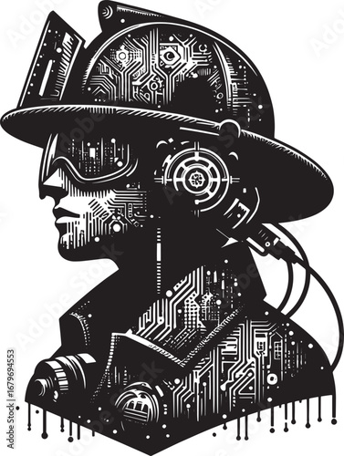 Environmentální ochrana nebo ekologické myšlení koncept vektorové ilustrace. Silueta hlavy člověka v klobouku s větrnými turbínami a solárními panely produkujícími zelenou alternativní energii.