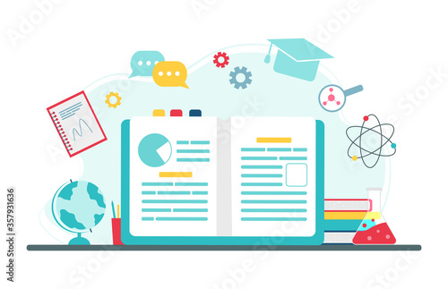 Šablona domovské stránky vzdělávacího webu. Vektorový plochý designový prvek s kopírovacím prostorem a tlačítkem read more.