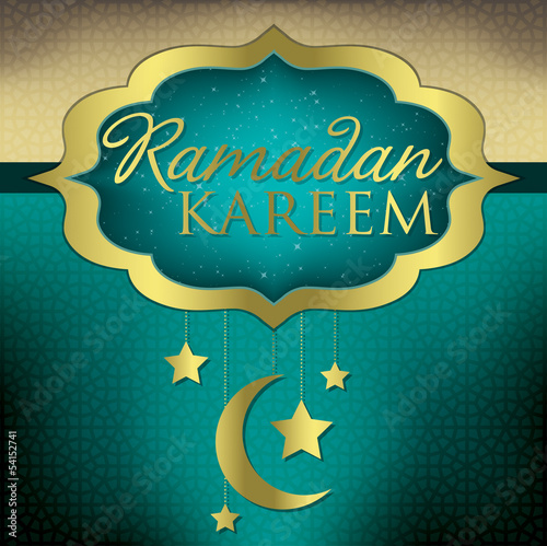 Eid al Adha karty design ve 3D moderním vektorovém stylu. Islámský sváteční banner Eid Mubarak s lucernou ramadánu a Měsícem. Ramadán muslimská dekorace a fialové barevné pozadí.
