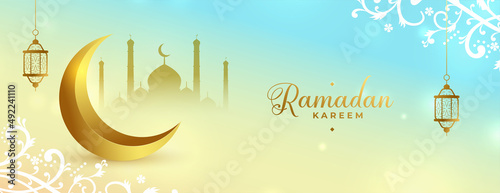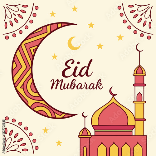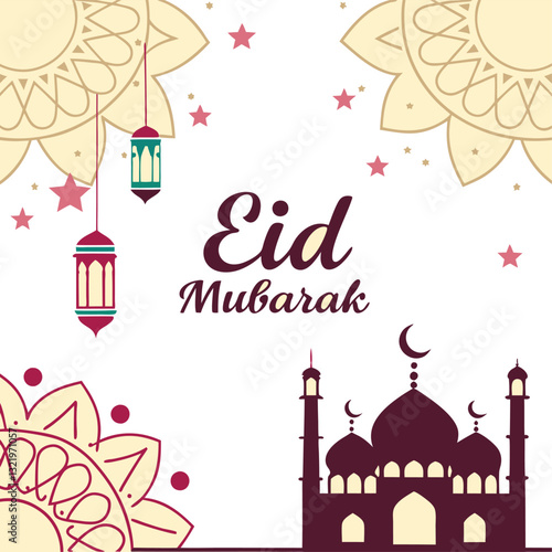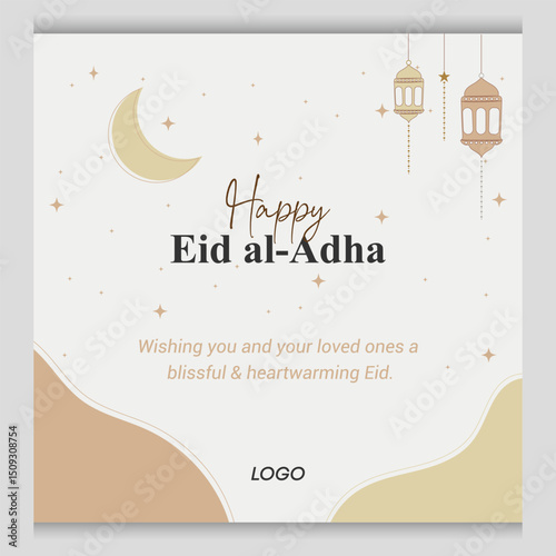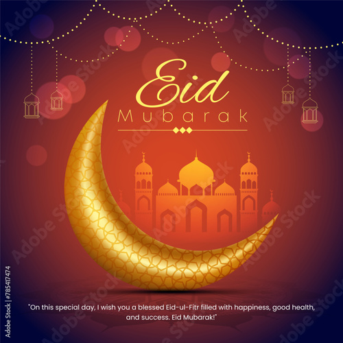Plakát Eid al Adha ve 3D moderním vektorovém stylu. Islámský sváteční banner Eid Mubarak s lucernou ramadánu a Měsícem. Ramadán muslimská dekorace a pozadí. Šťastná oslava Eid al Adha.