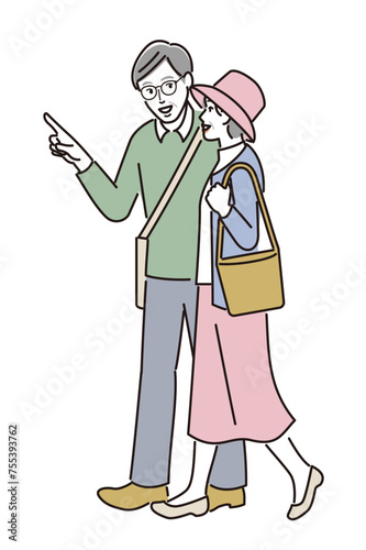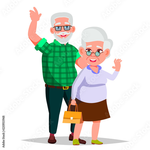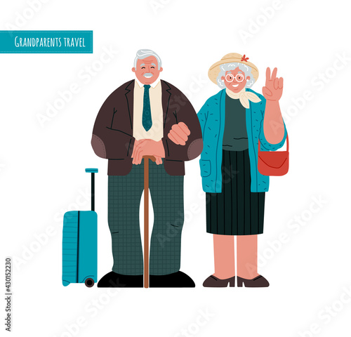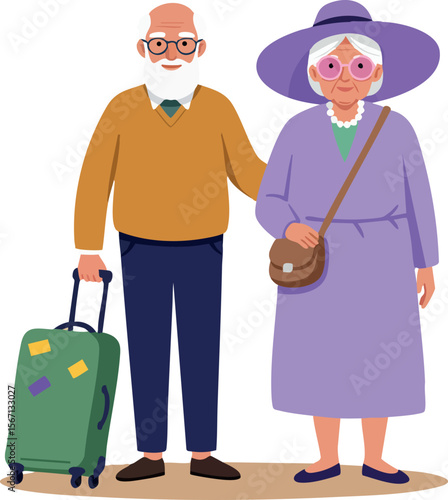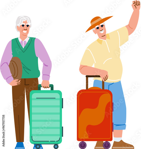 Starší pár cestování do zahraničí spolu vektorové ikony izolovaných na bílém pozadí