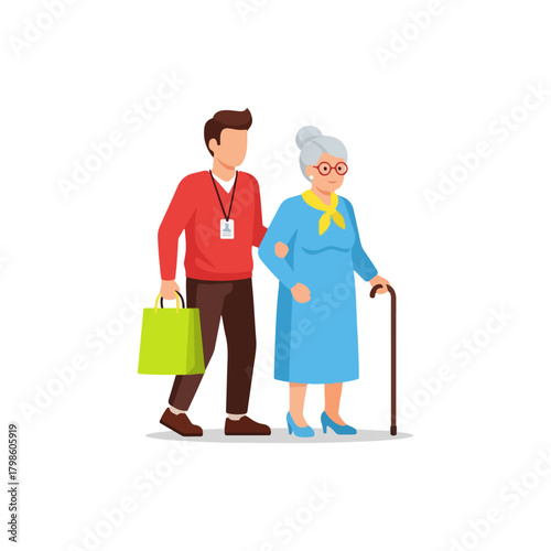 Starší pár chůze po ulici s taškou s potravinami, ploché vektorové ilustrace. Šťastný Starý muž a žena jdou nakupovat jídlo společně. Senioři aktivní životní styl.