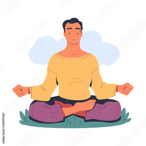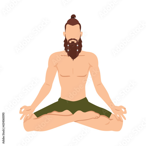 Starší muž meditující cvičit jógu dýchání cvičení vektorové ikony izolovaných na bílém pozadí