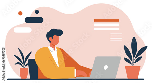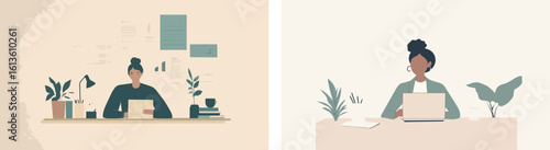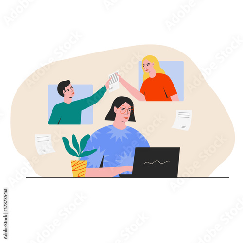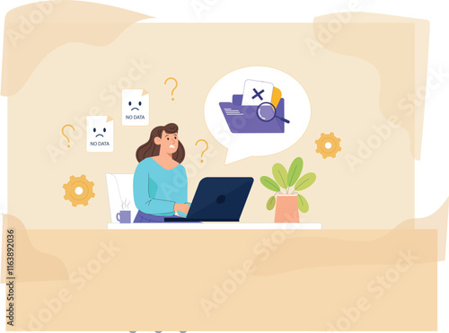 Starší žena procházení Internetu pomocí notebooku sedí v posteli doma vektorové ikony izolovaných na bílém pozadí.