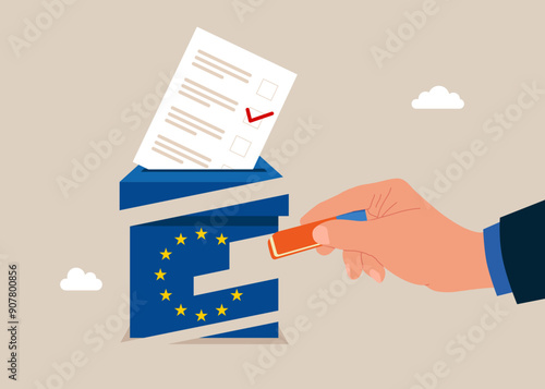 Volební den koncept vektorové ilustrace. Ruční vkládání hlasovacího papíru do volební urny. Volební koncept v plochém stylu.