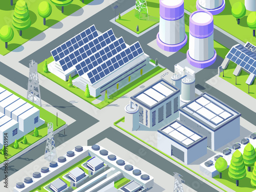 Elektrická solární energie nabíječka baterií pro domácí a auto izometrický vektor. Rodinný dům s fotovoltaickým panelem na střeše a nabíjením elektrokáru z alternativního zeleného generátoru