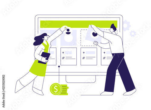 Elektrikář a instalatér pracovníci výměna žárovky, upevnění ucpaný kuchyňský dřez, vektorové ploché ilustrace. Interiér kuchyně a domácí mistr opravář kreslené postavičky. Opravy domů.