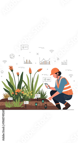Vektorová ilustrace usmívajícího se pracovníka stojícího na žebříku a osazování žárovky do zásuvky. Elektrikář plochý styl designový prvek.