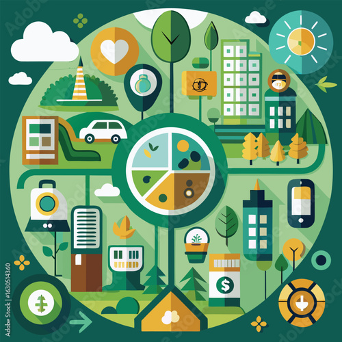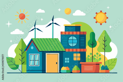 Elektřina vektorový plochý styl designu ilustrace. Vedení vysokého napětí a městské budovy připojené k elektrické zástrčce. Koncept přenosu elektrické energie pro webový banner, webovou stránku atd.