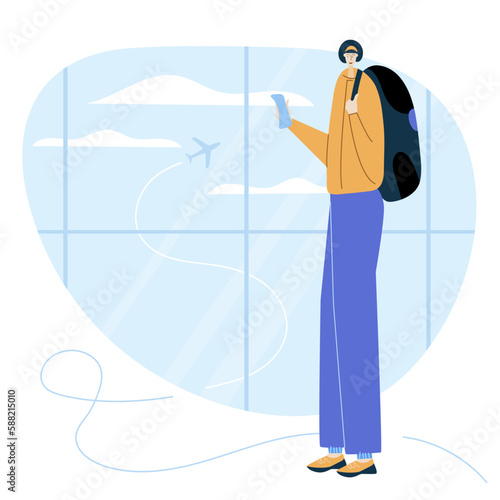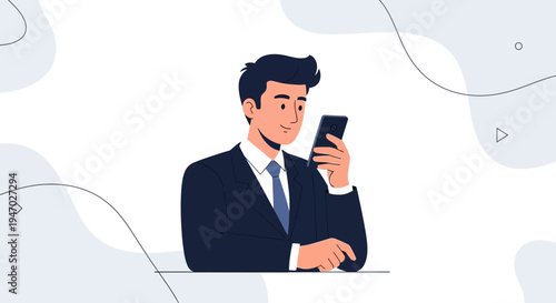 Elegantní stylový muž poslouchá rádio podcast pomocí vektorové ikony mobilního telefonu izolované pozadí.