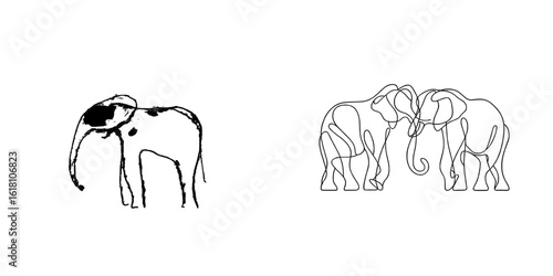Silueta slona s Africkou přírodou, rodina žiraf, nosorožec, Zebra uvnitř, zvířata Safari parku, vektorové ilustrace v papírovém uměleckém stylu. Zachraňte zvířata, Chraňte divokou zvěř. Cestování. Vícenásobná expozice.