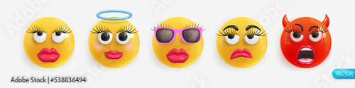 Emoji maker, Smiley creator. Vector design kolekce emotikonu částí těla a příslušenství vám umožní vytvořit si vlastní cool ženské emodži.