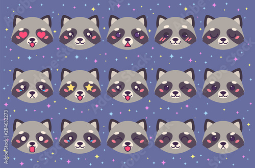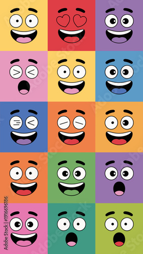 Sada vektorů Emoji. Roztomilý kreslený emotikon ukazující špatné a dobré opačné pocity ilustrace. Barevné komunikační bubliny náměstí s kawaii tvář