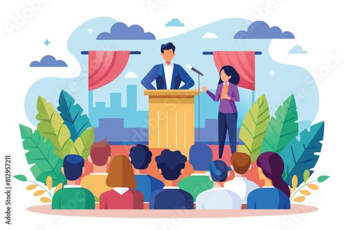 Obří šéf ruce drží šťastný podřízený malé mužské a ženské postavy, plochý vektorový ilustrace. Bezpečnost na pracovišti, péče o zaměstnance, pohoda, výhody. Firemní pojištění.