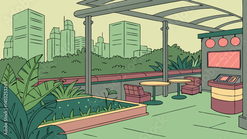 Prázdné hudební pódium s hudebním nástrojem připravené v parku pro Open air rock punk party festival a vystoupení kapely vektorové ilustrace
