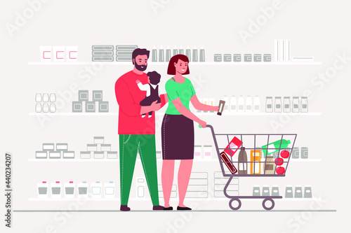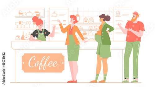 Užijte si vektorový webový banner šablony. Šťastná dívka, roztomilá plus velikost žena se snaží na šaty před zrcadlem, retro plochý styl designu ilustrace. Tělo pozitivní, milujte se, sebevědomí.