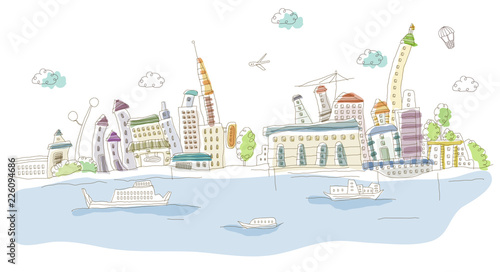 Vektorová ilustrace trenéra a delfína skákavého provádějícího triky, mladý muž si užívá plavání s delfínem v modrém bazénu. Delfinárium plochý styl designové prvky.