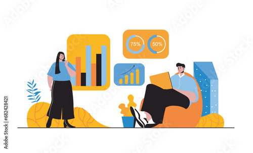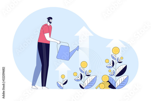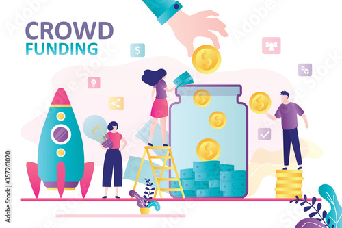 Ekologie, vektorová plochá ilustrace. Drobní lidé sbírají, třídí a házejí odpadky do velkých různých barevných recyklačních popelnic. Koncepce ochrany životního prostředí pro webový banner, webovou stránku atd.