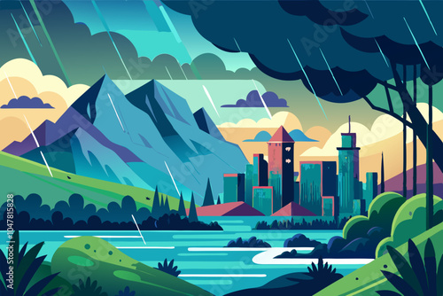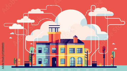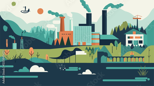 Budova průmyslového závodu s dýmkami, vektorové ilustrace v moderním řemeslném stylu paper art. Znečištění životního prostředí, úspora životního prostředí, ekologický koncept pro plakát, banner atd.