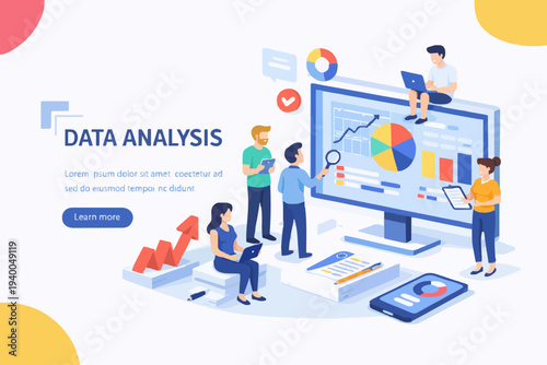 Řešitel rovnic, návrh vstupní stránky, šablona banneru webových stránek, izometrická ilustrace plochého vektoru. Online rovnice kalkulačka. Výuka matematiky, školní vzdělávání.