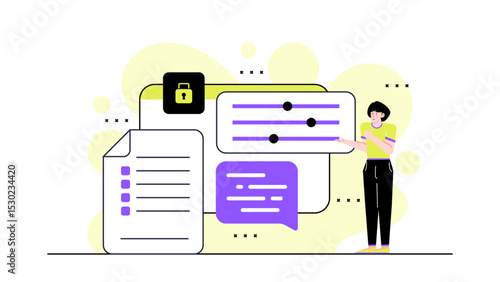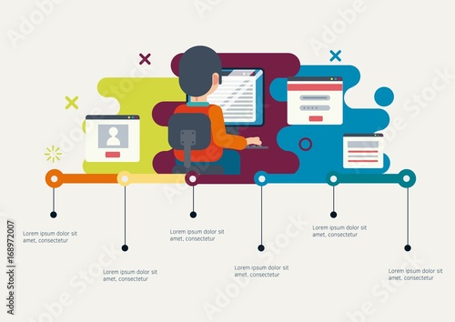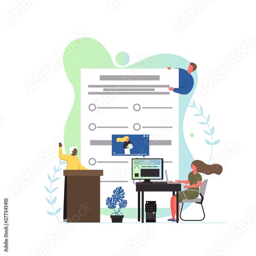 Vektorový plochý styl designu ilustrace mladých lidí studentů, kteří testují. Online testování, formulář dotazníku, distanční vzdělávání, průzkum, koncept internetové zkoušky pro webový banner, webovou stránku atd.