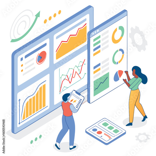 Izometrický šťastný podnikatel a mobilní telefon s vynikajícími informacemi o kreditním skóre na obrazovce stojící na bankovní kartě, ploché vektorové ilustrace. Vysoká osobní kreditní rating online zpráva, dobrá historie.