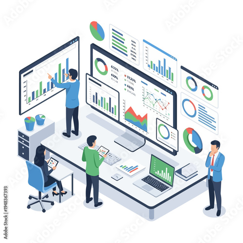 Izometrické obchodní lidé a mobilní telefon s vynikajícími informacemi o kreditním skóre na obrazovce, ploché vektorové ilustrace. Vysoká osobní kreditní rating online zpráva, dobrá historie.
